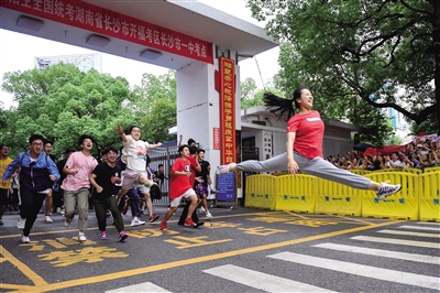 2020年7月,高考结束后,长沙市考生跨出一个漂亮的“一字马”。辜鹏博 摄